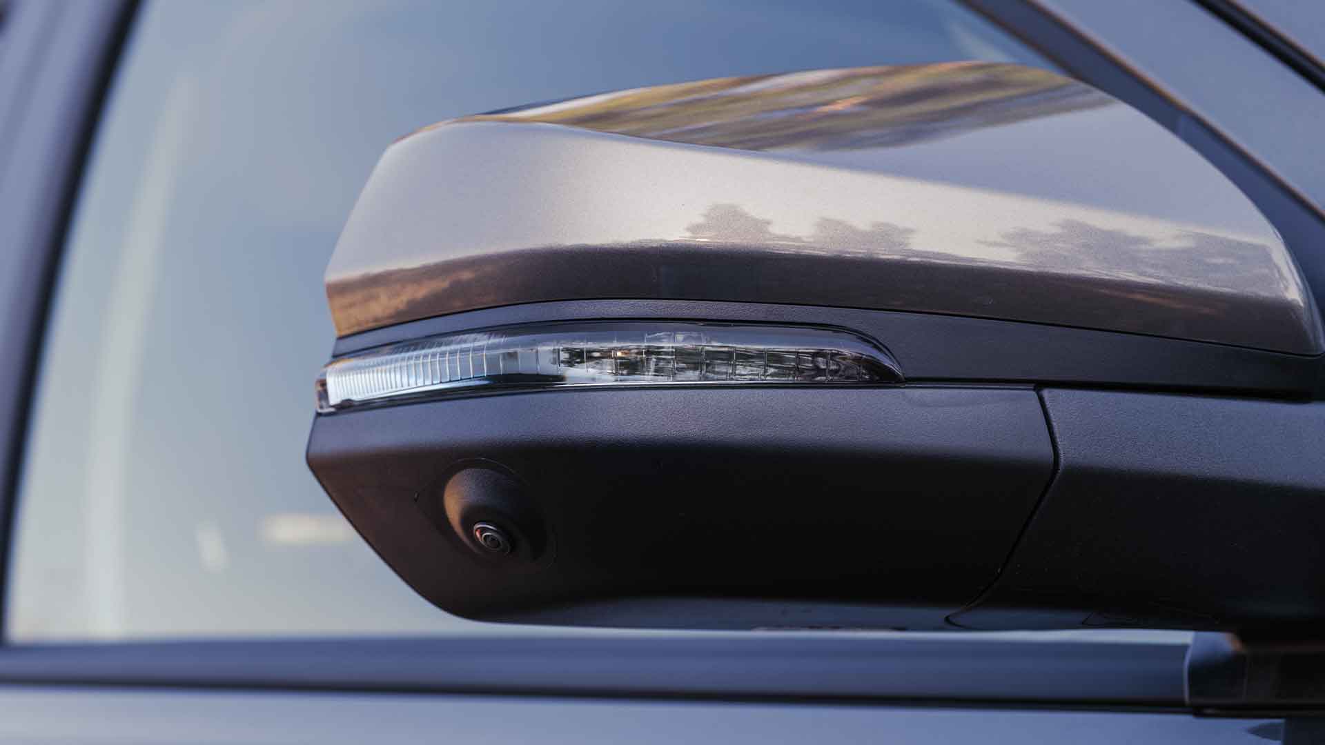Wyposażony jest w elektrycznie składane i regulowane lusterka, które zwiększają komfort i bezpieczeństwo. Dodatkowo, czujnik martwego pola monitoruje obszar niewidoczny, ostrzegając o pojazdach w tym rejonie.